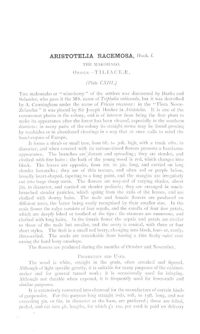 Aristotelia racemosa, Hook. f. ... ... ... ... ... ... CXIII.