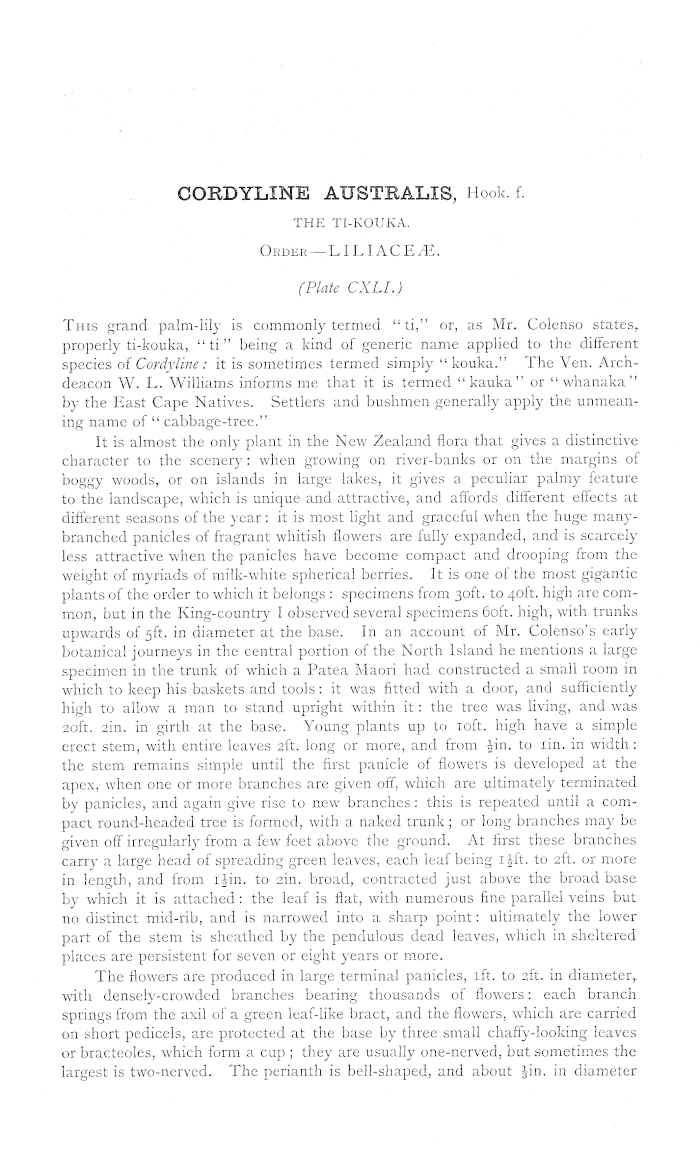 Cordyline australis, Hook. f. ... ... ... ... ... ... ... CXLI.