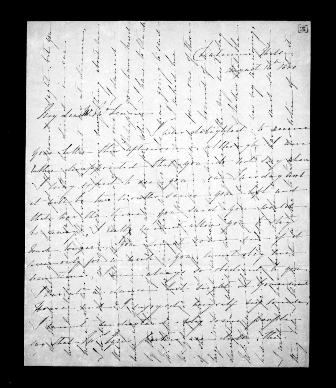 Dalmuir Hill August 16th 1850 My dear Mr McLean I was delighted to receive your letter this afternoon although I was rather disappointed that you do not say when I may expect to see you. On Tuesday next it will be two months since you left and that was the time you said you would be away. I really cannot allow you to stay much longer. You must come in if it were only for a week. You must obey me sometimes. I am always so obedient to you. I was at a dance last night at Government House and I enjoyed myself very much. I cannot understand why some people say that Mrs Eyre's parties are dull. The