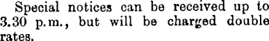 Special notices can be received up to 3.30 p.m., but will be charged double rates.