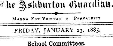 The Ashburton Guardian. Magna Est Veritas et Prevalebit FRIDAY, JANUARY 23, 1885. School Committees.