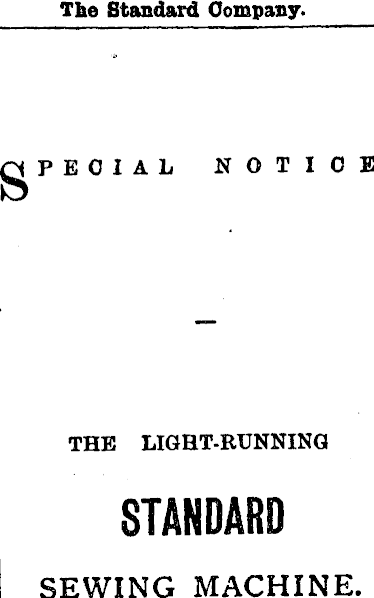 The Standard Company. gPEOI AL NOTICE THE LIGHT-RUNNING STANDARD SEWING MACHINE.