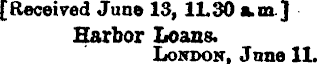 [Received Jane 13,11.30 a.m ] Harbor Loans. London, Jnne 11.