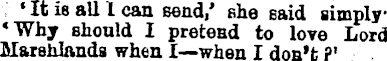 «It is all 1 can send,' she said simply 'Why should I pretend to love Lord Marshlands when I—when I don't ?'