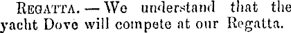 Regatta. —Wo understand that the yacht Dove will compote at our Regatta.