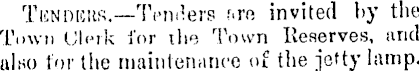 TicNDKits.—Tenders f.re invited by the Town Clerk lor ilie Town Reserves, and aI no for the maintenance of the jetty lamp.