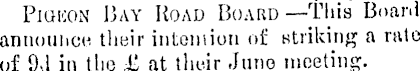 Piokon Bay Road Board —This Board announce their intention of -striking a rate of 9,1 in the £ at their Juno meeting.