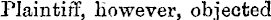 Plaintiff, however, objected.
