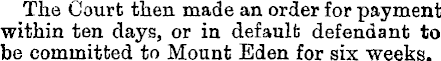 The Court then made an order for payment within ten days, or in default defendant to be committed to Mount Eden for six weeks.