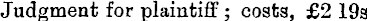 Judgment for plaintiff; costs, £2 19s.