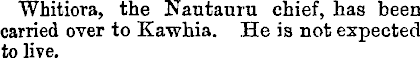"Whitiora, the Nautauru chief, has been carried over to Kawhia. He is not expected to live.