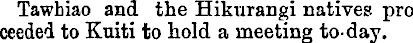 Tawhiao and the Hikurangi natives pro ceeded to Kuiti to hold a meeting to-day.