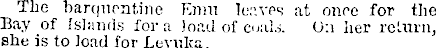 The barquentfne Enrn leaves at owe for the Bay of Islands fora load of coals. <J:\ her return, she is to load for Levufea.