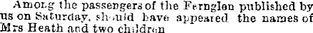 Amotg the passeDgersof the IVrnglen published by us on Saturday, should have appeared the names of Mrs Heath and two children