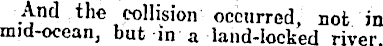 And the collision occurred, not in mid-ocean, but in a land-locked river.