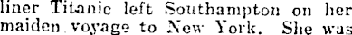 liner Titanic left Southampton on her maiden voyage to New York. She was