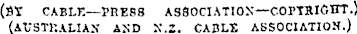 (St CABLE—PREBB ASSOCIATION—COPTRIOHT.) (AUSTRALIAN AND N.2. CABLE ASSOCIATION.)