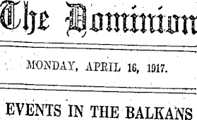 The Dominion. MONDAY, APRIL 16, 1917. EVENTS IN THE BALKANS.