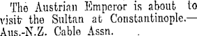 The Austrian Emperor is about to visit the Sultan at Constantinople.— Aus.-N.Z. Cable Assn.