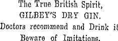 The True British Spirit, GILBEY J S DRST GIN. Doctors recommend and Drink it, Beware of Imitations.