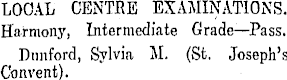 LOOAL CENTRE EXAMINATIONS. Harmony, Intermediate Grade—Pass. Dnnford, Sylvia M. (St. Joseph's Convent).