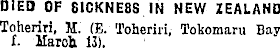DIEO OF 81CKNE8B IN NEW ZEALAND, Toheriri, K.' (E. Toheriri, Tokomaru Bay, f. Maroh 13).