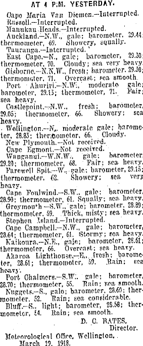 180WEATHER REPORT Dominion, Volume 11, Issue 155, 20 March 1918, Page 9