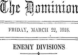 The Dominion. FRIDAY, MARCH 22, 1918. ENEMY DIVISIONS