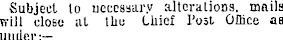 Subject lo necessary alterations, mails will close at lliu Chief Post Office as under:—