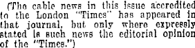 (Tim cable news in this issue accredited (o the London "Times" has appeared in that journal, but only where ejpreeely ntatod la Bitch news tho editorial opinion of the "Times.")
