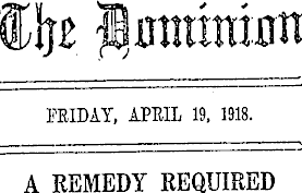 The Dominion. FRIDAY, APRIL 19, 1918. A REMEDY REQUIRED