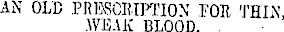 AN OLD PRESCRIPTION FOR THIN, WEAK BLOOD. .