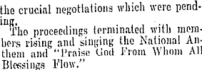 the crucial negotiations which were pending Tho proceedings terminated with members rising and singing the National Anthem and "Praise Uml From Whom All Blessings Flow."