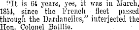 "It is CI years, yes, it was in March, 1851, since the French fleet passed through the Dardanelles," interjected the Hon. Colonel Bnjllie.