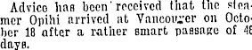 Advico has been'received that the slramcr Opihi arrived at Vancouver on October 18 after a rather smart passage of 48 days.