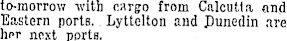 to-morrow with cargo from Calcutta and Eastern ports.. Lyttelton and Dunedin are her next ports.
