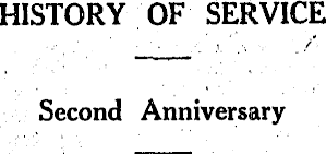 HISTORY OF SERVICE Second Anniversary