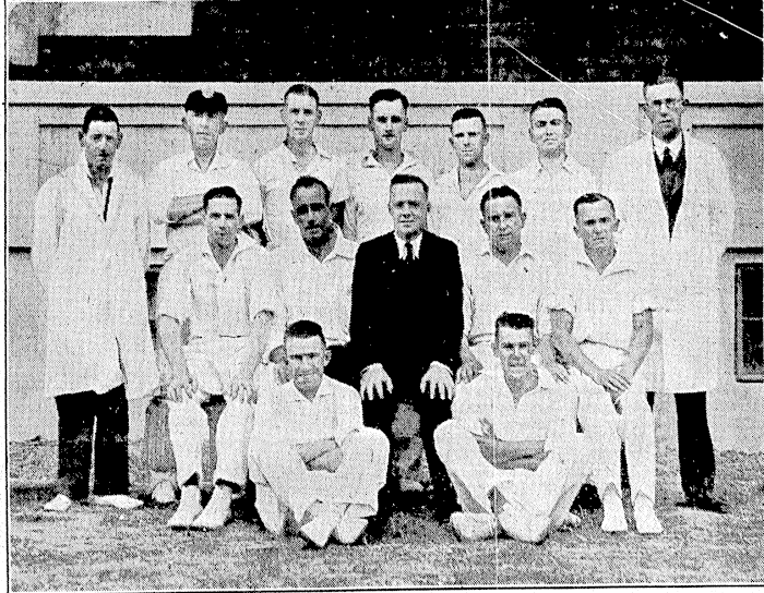 102Mercantile League Cricket.—Teams representing Wanganui and Wellington, who commenced a two-day match at Athletic Park yesterday. Left: The Wanganui team-Back row: C . Smith G. McDougal, W. A. Davidson. O. R. Holland, H. Lowe. Middle row: W. Evans, L. A. Wilson, K. H. Cave (manager), R. J. Sewell (captain). H. Thomas. Front row: G. Thrush C. Byeas. Right—the Wellington team: Back row-E. Napier (umpire), W. Condliffe, E. T. H. Robinson, W. Johnson, L. Foley, O. Johnson, J. McGillivray (umpire). Middle row: J. Melville, J. H. James (captain), W. R. King (manager), N. Aldridge, F. Swain. Front row: T. Tucker, W. Jupp. Dominion, Volume 28, Issue 83, 2 January 1935, Page 7