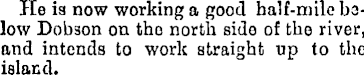 He is now working a good half-mile bolow Dob3on on tho north side of the river, and intends to work straight up to the island.