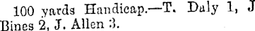 100 yards Handicap. —T. Daly 1, J. Bines 2, J. Allen :?.