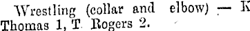 WreslliDg (Cumberland)— T. Bogers 1 K. Thomas 2.