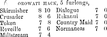 (' OItOWATI HACK, 5 flU'longS, Skirmisher 810 Dialogue 7 0 Crusader 8 6 Bskanui 7 0 Token 7 8 Country Maid 7 0 Ho veil !e 7 G Norrnane3s 7 0 Millstream 7 4