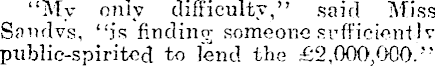 “My only difficulty,” said Miss Saudvs, “is finding someone sufficient Iv public-spirited to lend the £2,000,000.”