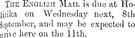 The English Mail is due at Hojdtika on Wednesday next, Bfch September, and may be expected to ju'he here on the 11th.
