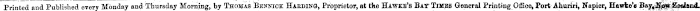 Printed and Published every Monday and Thursday Morning, by Thomas Berwick Haeding, Proprietor, at the Hawke's Bay Times General Printing Office, Port Ahuriri, Napier, Hawke'a Bay,J^Keaiand-
