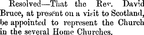 Resolved—That the David Bruce, at present on a visit to Scotland, be appointed to represent the Church in the several Home Churches.