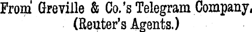 From Greville & Co.'s Telegram Company, (Renter's Agents.)
