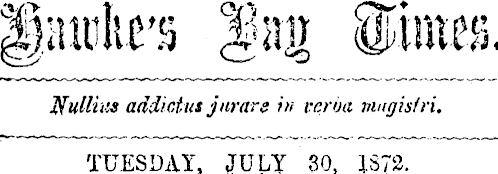 Hawke's Bay Times. Nullis addictus jarare in verba mugistri. TUESDAY, JULY 30, 1872.