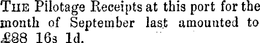 Tiie Pilotage Receipts at this port for the month of September last amounted to MQQ 163 Id.