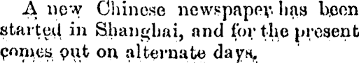 A new Chinese newspaper- has been started in Shanghai, and for the present comes put on alternate dayH.